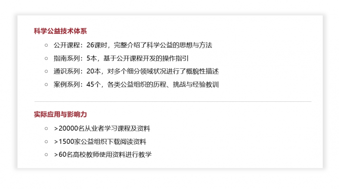 《为善穷理——科学公益的思想及其解释》是三一基金会开发的视频课程,共包含26节课,大约15小时。课程包含了公益慈善的基本性质、演进流变、公益项目的逻辑模型、组织发展的要素、知识工作者的技能等方面进行了介绍与讲解。课程被许多组织指定为成员的学习资料。