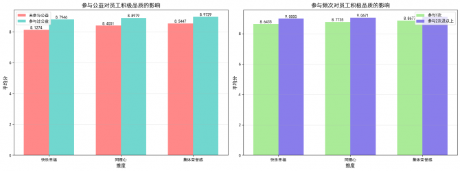 公益不仅是付出,更是收获。在国内,参与过公益的员工,幸福感比未参与者高出6.7%。同理心提升6%,集体荣誉感强化4.3%。更妙的是,公益存在“频率效应”——参与得越频繁,这些积极体验就越强烈。