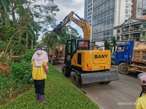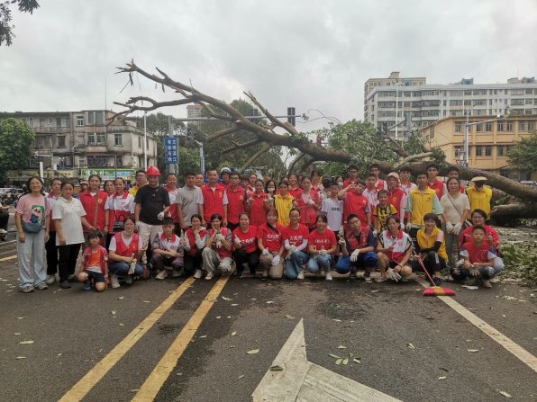 灾情发生后,湛江市三一响应救援队立即启动应急机制,与共青团湛江市委员会、霞山区团委、赤坎区团委、麻章区团委紧密合作,与党员干部、网格员、武警官兵及民兵等迅速集结,深入受灾严重的街道、社区,开展紧急清理道路障碍、抢修电力供应等救援工作。他们的身影不断穿梭在街头巷尾显得格外坚定,为早日恢复而努力。