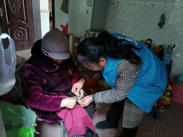 根据梁董事长的指示,医疗养老是道童乡村振兴的关键工作。在道童村一千多常住人口中,有六百多位是老人,其中八九十位为独居或孤寡老人,多数老年人的身体状况不好。医养的最高目标非常清晰:“生活有人问,困难有人帮,生病有人助,应急有人理,孤独有人陪”。为了实现这个目标,团队的策略是建立“社工+照护员+医疗+响应”为主的居家养老模式。基金会资助道童当地的一家社工机构开展专业服务,本地村民组建志愿者队伍及一支受过培训的照护员队伍。志愿者和照护员为老人提供上门照料,包括打扫卫生、剪指甲、量血压、配药等等。基金会在村里建立了一间医疗养老中心,用于为老人提供诊疗、康复、健康打卡、讲座等活动。同时,对大约40户老人进行居家适老化改造,降低跌倒意外的发生,并通过安装智能设备对老人的突发疾病或需求进行响应。