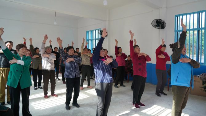 这种组合可以根据老人的实际需求提供服务。针对行动不便的孤寡老人,每周社工和照护员会上门探访。对于健康的活力老人,每周两次组织进行健康打卡,集体跳健康拍打操,卫生院医护人员到场进行健康管理。对于遇到临时突发情况的老人,进行及时的个案处理。团队的标准是,对应急情况,白天30分钟内,晚上60分钟内,医护人员必须到达现场,对老人进行第一时间的处理。仅2024年,就产生了5次紧急救护,成功挽救了5位老人的生命。然而,村里老人面临的不仅仅是医疗风险,精神心理需求也同样重要。